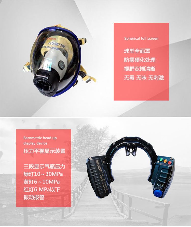 | 產(chǎn)品特點(diǎn): | 配備無線傳感器式平視顯示裝置,壓力平視顯示裝置可分三段顯示氣瓶?jī)?nèi)的壓力范圍,綠燈常亮代表氣瓶壓力在10~30MPa之間,黃燈常亮代表氣瓶壓力在6~10MPa之間,當(dāng)氣瓶壓力在6 MPa以下時(shí)紅燈一直閃亮, 并且開始振動(dòng)。配備腰間他救接口,為使用者之外的人員提供呼吸救助。 |